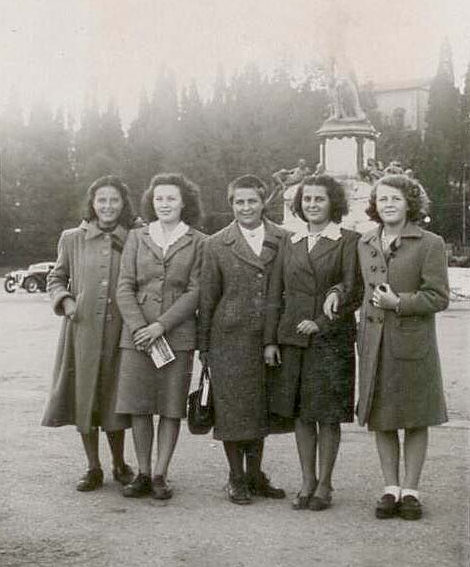 Nonna Adelina (in lutto per la morte dello zio Gianni o la nonna Bigina??) e figlie a Firenze – maggio 1948 per una riunione della donne laureate