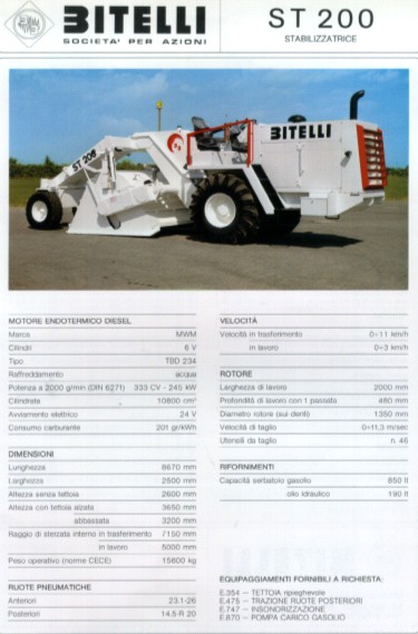 Grazie ad uno sforzo combinato dell'ufficio Tecnico Bitelli e Niarb, si potè lanciare sul mercato la stabilizzatrice modello ST 200 nel giro di pochi mesi.