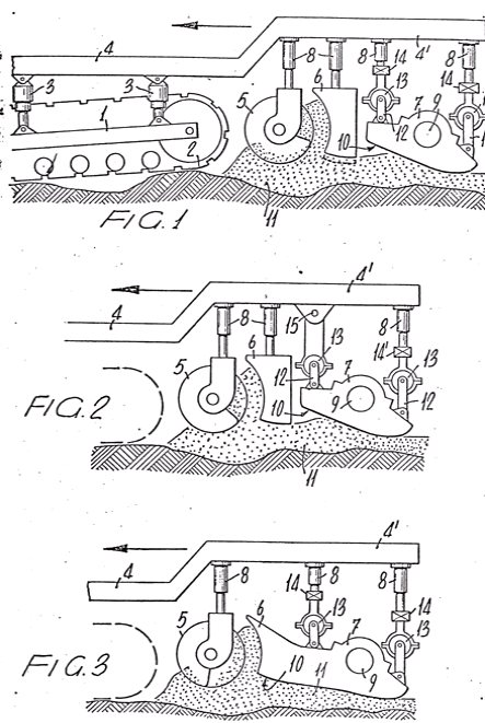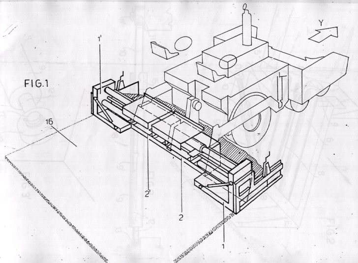 Una sezione trasversale schematica di un modo di esecuzione di una stabilizzatrice semovente brevettata dalla Niarb, che utilizza il rivoluzionario sistema di sospensione a pistone singolo.