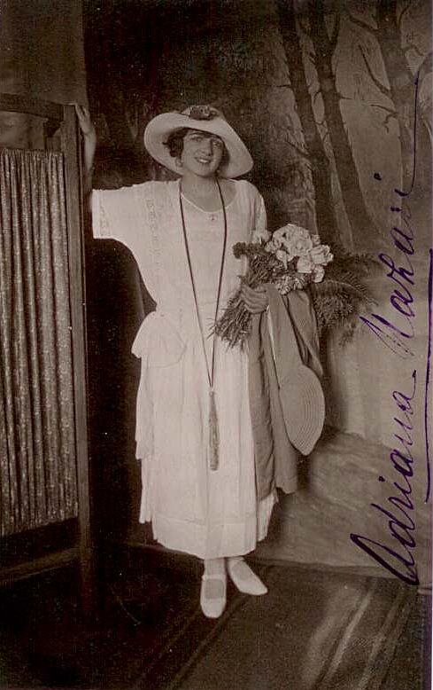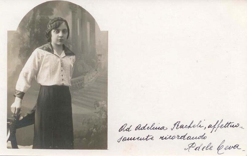 Sinistra: “Ad Adelina Racheli con simpatia ed ammirazione Adriana Nazari” Destra: “Lola – alla carissima ingegnere Racheli – grata per gli applausi tributatile in “Anima Allegra” ‐ Adriana Nazari – febbraio 1923