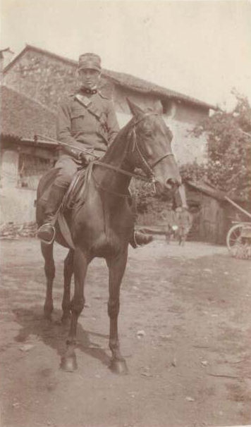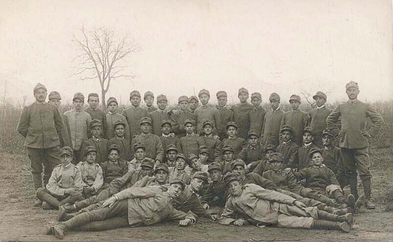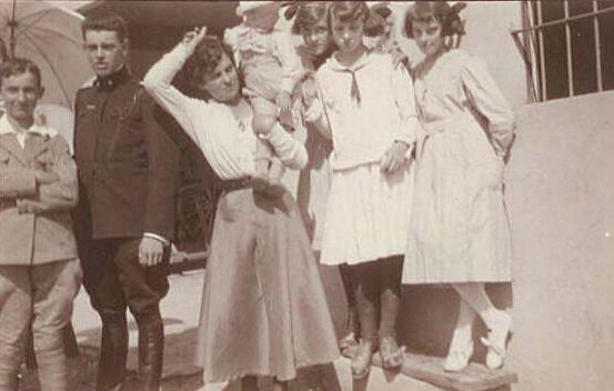 14 Luglio 1917 ‐‐ Foto di gruppo discussa da Celestino nella sua lettera ad Adelina; Giuseppe [?] a sinistra; Celestino è il secondo da sinistra; Adelina (con in braccio Gianni?) in centro; Lena, Luisa e Rosina[?]