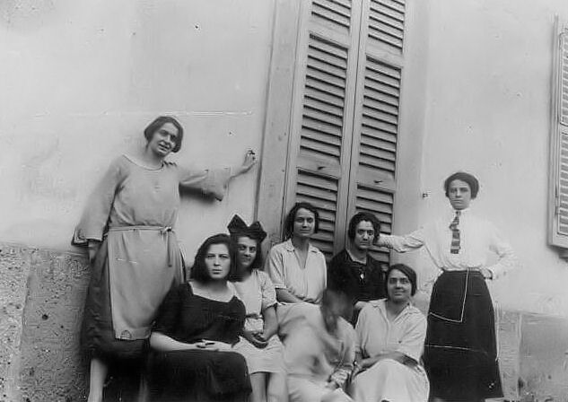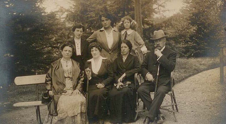 Da sinistra: con le amiche Cavallini; Nonna Adelina in piedi con la cravatta[???]; zia Sii davanti con la zia Lena con fiocco dietro